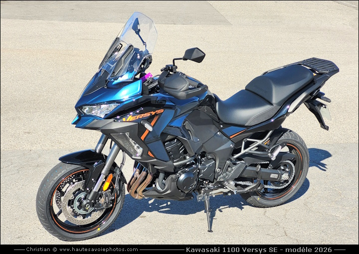 ![]() Photo : KAWASAKI Versys 1100 rodage en 287km - Lieu : Seynod - Appareil : Samsung S20FE - JPG de 12 Mpixels en 2025 - © Christian Moteur : 4 cylindres en ligne de 1099cm³, 4 temps, double ACT, 16 soupapes, puissance 135ch à 9000tr/min, couple 112Nm à 7600tr/min. Boite 6 vitesses, shifter. Fourche AV inversée pilotée KECS Ø43 débatement 150mm, mono-amortisseur AR piloté KECS débatement 152mm. Frein avant à double disque Nissin 310mm, frein arrière à disque Nissin 250mm. Pneu avant 120/70x17, pneu arrière 180/55x17. Hauteur de selle 840mm, garde au sol 150mm, empattement 1520mm, réservoir de 21L, poids 259kg tous pleins faits. ![]() Photo : KAWASAKI Versys 1100 modèle 2025 - Lieu : Seynod - Appareil : Samsung S20FE - JPG de 12 Mpixels en 2025 - © Christian MON AVIS : ce gros trail-gt routier est une invitation au voyage dans le confort et avec un moteur fiable et bien adapté au long court. LES PLUS : moto confortable, adaptée au duo, partie cycle efficace, régulateur de vitesse, belle finition et très bien équipée. Top-case + valises de 27L élégantes et bien intégrées. Bonne protection. Moteur souple à bas régime et énergique dans les tours... LES MOINS : pot 4 en 1 un peu massif, inadapté au off-road, moto un peu lourde à manoeuvrer à l'arrêt... ![]() Photo : Versys 1100 SE Grand Tourer - Lieu : Col de la Chambotte - Appareil : Samsung S20FE - JPG de 12 Mpixels en 2025 - © Christian ![]() Photo : KAWASAKI Versys 1100 SE - Lieu : Lacc du Bourget - Appareil : Samsung S20FE - JPG de 12 Mpixels en 2025 - © Christian ![]() Photo : KAWASAKI Versys 1100 SE - Lieu : Col de la Marocaz - Appareil : Samsung S20FE - JPG de 12 Mpixels en 2025 - © Christian ![]() Photo : KAWASAKI Versys 1100 SE - Lieu : Lac de Lathuile - Appareil : Samsung S20FE - JPG de 12 Mpixels en 2025 - © Christian ![]() Photo : KAWASAKI Versys 1100 SE - Lieu : Col des Prés - Appareil : Samsung S20FE - JPG de 12 Mpixels en 2025 - © Christian ![]() Photo : compteur de la KAWASAKI Versys 1100 - Lieu : Duingt - Appareil : Samsung S20FE - JPG de 12 Mpixels en 2025 - © Christian ![]() Photo : commodo de la KAWASAKI Versys 1100 - Lieu : Duingt - Appareil : Samsung S20FE - JPG de 12 Mpixels en 2025 - © Christian ![]() Photo : roue AV de la KAWASAKI Versys 1100 - Lieu : Duingt - Appareil : Samsung S20FE - JPG de 12 Mpixels en 2025 - © Christian ![]() Photo : moteur de la KAWASAKI Versys 1100 - Lieu : Duingt - Appareil : Samsung S20FE - JPG de 12 Mpixels en 2025 - © Christian ![]() Photo : roue AR de la KAWASAKI Versys 1100 - Lieu : Duingt - Appareil : Samsung S20FE - JPG de 12 Mpixels en 2025 - © Christian ![]() Photo : Kawa Versys 1100 rodage en 180km - Lieu : Chindrieux - Appareil : Samsung S20FE - JPG de 12 Mpixels en 2026 - © Christian ![]() Photo : Versys 1100 SE - Lieu : canal de Savière à Chanaz - Appareil : Samsung S20FE - JPG de 12 Mpixels en 2026 - © Christian ![]() Photo : Versys 1100 SE - Lieu : Aix-Les-Bains - Appareil : Samsung S20FE - JPG de 12 Mpixels en 2026 - © Christian ![]() Photo : Versys 1100 SE modèle 2026 - Lieu : Seynod - Appareil : Samsung S20FE - JPG de 12 Mpixels en 2026 - © Christian ![]() Photo : Versys 1100 SE bleue - Lieu : Chindrieux - Appareil : Samsung S20FE - JPG de 12 Mpixels en 2026 - © Christian