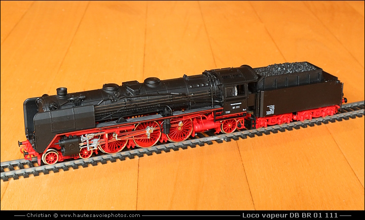 ![]() Photo : ma locomotive à vapeur DB BR 01 111 - Lieu : Saint Jorioz - Appareil : Canon G5X - JPG de 20 Mpixels en 2025 - © Christian ![]() Photo : ma loco DB BR 01 111 type 231 Pacific - Lieu : Saint Jorioz - Appareil : Canon G5X - JPG de 20 Mpixels en 2025 - © Christian ![]() Photo : ma locomotive à vapeur DB BR 01 111 - Lieu : Saint Jorioz - Appareil : Canon G5X - JPG de 20 Mpixels en 2025 - © Christian ![]() Photo : ma locomotive à vapeur DB BR 01 111 - Lieu : Saint Jorioz - Appareil : Canon G5X - JPG de 20 Mpixels en 2025 - © Christian - Type 231 Pacific - Diamètre des roues motrices : 2m00 - Puissance : 2210 cv - Vitesse maxi : 130 km/h. Pression de la chaudière : 16 bars - Contenance carbon : 10 tonnes - Contenance en eau : 32 ou 34 tonnes. Construction de 1926 à 1938 - retrait DB en 1973 et 1982 en RDA - Poids en service loco : 111 tonnes - Longueur : 23m94. Lien vers le site internet de Wikipédia sur les locos BR01 de la Deutsche Reichsbahn...  |