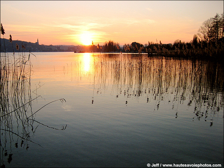 un beau et doux coucher de soleil sur la baie d'Annecy