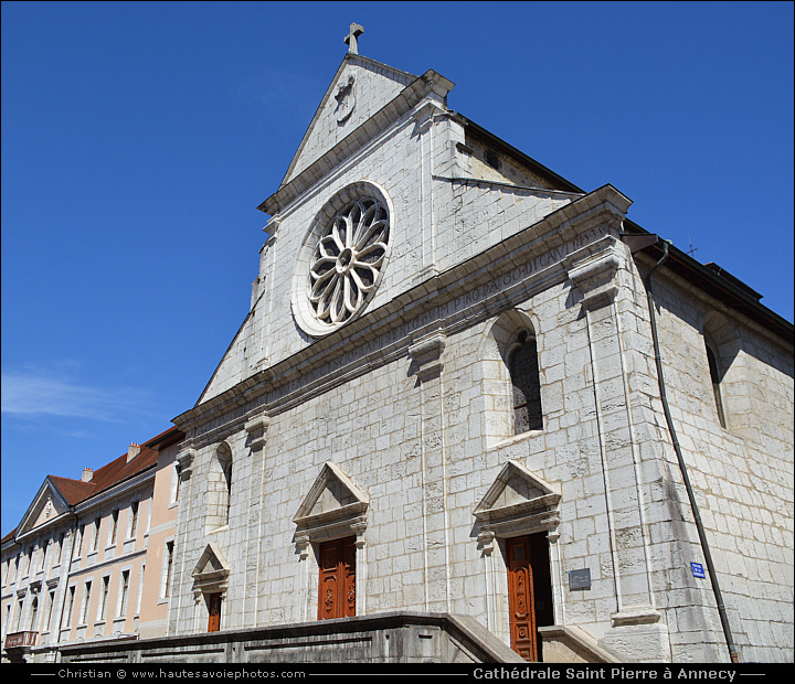 ![]() Photo : rosace de la cathédrale - Lieu : Annecy - Appareil : Fujifilm S6500 - JPG de 6 Mpixels en 2006 - © Christian Construite par Jacques Rossel au début du XVIe siècle, elle servit d'abord de chapelle au couvent de Franciscains. Ensuite elle fut transformée en temple de la déesse Raison sous la Révolution Française puis redevint cathédrale en 1822. Façade style Renaissant et intérieur gothique. Elle abrite des oeuvres d'art baroque et un bel orgue de 2000 tuyaux. ![]() Photo : intérieur de la cathédrale - Lieu : Annecy - Appareil : Nikon D7100 - JPG de 24 Mpixels en 2019 - © Christian ![]() Photo : Cathédrale Saint Pierre - Lieu : Rue J.J. Rousseau - Appareil : Nikon D7100 - JPG de 24 Mpixels en 2019 - © Christian ![]() Photo : orgue de la cathédrale - Lieu : Annecy - Appareil : Nikon D7100 - JPG de 24 Mpixels en 2019 - © Christian ![]() Photo : fronton de la cathédrale - Lieu : Annecy - Appareil : Canon G7X - JPG de 20 Mpixels en 2019 - © Christian ![]() Photo : vierge dans la cathédrale - Lieu : Annecy - Appareil : Nikon D7100 - JPG de 24 Mpixels en 2019 - © Christian |