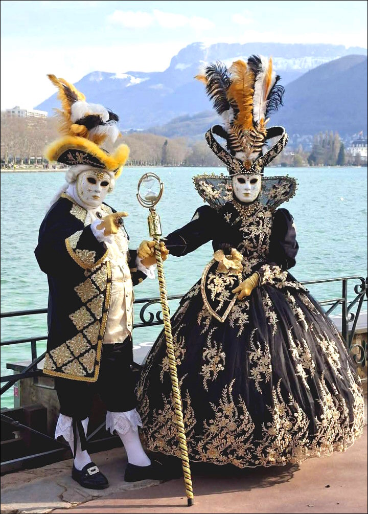 Photo : couple de costumés en noir et or - Lieu : Annecy - cliché trouvé sur Facebook en mars 2026