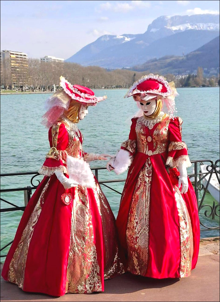 Photo : deux jeunes costumées au bord du lac - Lieu : Annecy - cliché trouvé sur Facebook en mars 2026