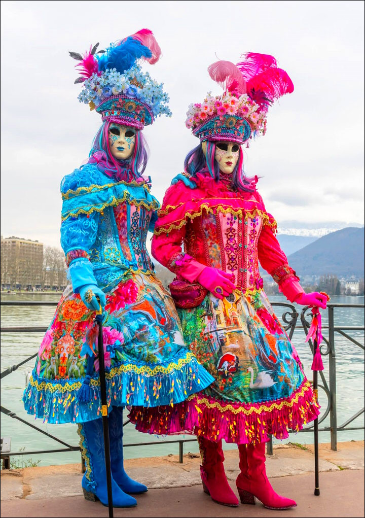 Photo : deux costumées multicolores - Lieu : Annecy - cliché trouvé sur Facebook en mars 2026