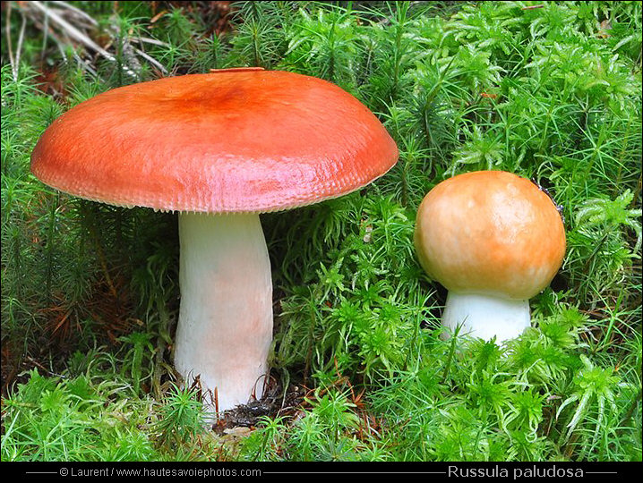 ![]() Photo : Russula paludosa - Lieu : tourbière au Salève - Appareil : Nikon D7000 - JPG de 16 Mpixels en 2013 - © Christian ![]() Photo : Russule des marais - Lieu : tourbière au Salève - Appareil : Nikon D90 - JPG de 6 Mpixels en 2012 par Laurent Francini ![]() Photo : Russula paludosa - Lieu : tourbière au Salève - Appareil : Nikon D7000 - JPG de 16 Mpixels en 2013 - © Christian - Chapeau : ø 8 à 18cm, joli rouge vif particulier, rosâtre ou carminé pourpré ou orangé, parfois pâli au centre avec l'âge - Cuticule piléocystidiée. Chair : blanche, vite molle - Lames : larges, obtuses, crème ochracé jaunâtre avec l'arête parfois rosée - Spores : ochracées, subréticulées. Stipe : légèrement en massue, blanc ou lavé de rosé puis légèrement grisonnant, plein puis spongieux - Odeur et saveur : nulles. Habitat : dispersé ou en groupes sous épicéas en montagne, tourbières et marécages acides, avec les myrtilles - Visible : juillet à octobre. |
