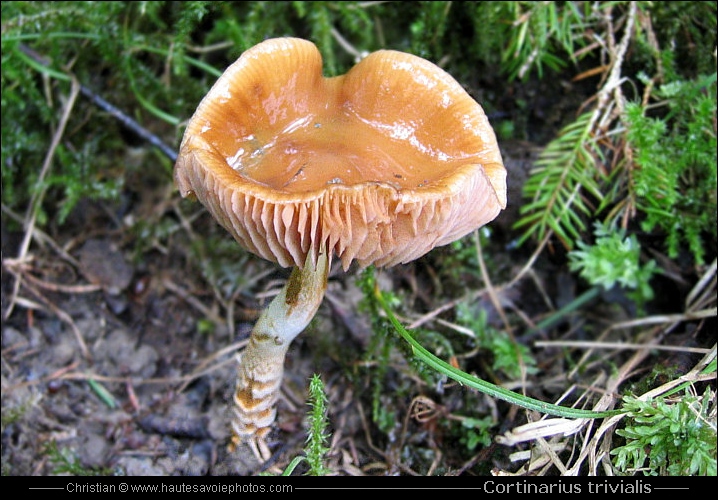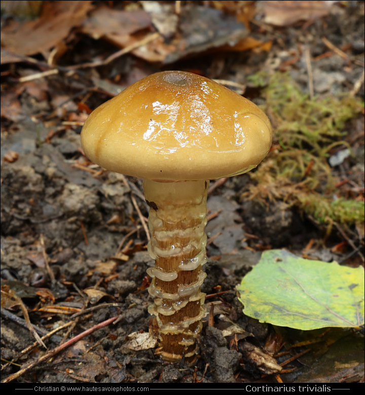 ![]() Photo : Cortinarius trivialis - Lieu : Saint Jorioz - Appareil : Canon IXUS 400 - JPG de 4 Mpixels en 2006 - © Christian ![]() Photo : jeune Cortinaire visqueux - Lieu : Saint Jorioz - Appareil : Fujifilm S6500 - JPG de 4 Mpixels en 2006 - © Christian ![]() Photo : Cortinarius trivialis - Lieu : Saint Jorioz - Appareil : LG Nexus 5 - JPG de 8 Mpixels en 2015 - © Christian ![]() Photo : Cortinaire visqueux - Lieu : Saint Jorioz - Appareil : Canon G5X - JPG de 20 Mpixels en 2022 - © Christian ![]() Photo : Cortinarius trivialis - Lieu : Saint Jorioz - Appareil : Canon G5X - JPG de 20 Mpixels en 2022 - © Christian ![]() Photo : Cortinaire visqueux - Lieu : Saint Jorioz - Appareil : Canon G5X - JPG de 20 Mpixels en 2022 - © Christian ![]() Photo : Cortinarius trivialis - Lieu : Saint Jorioz - Appareil : Canon G5X - JPG de 20 Mpixels en 2022 - © Christian ![]() Photo : Cortinaire visqueux - Lieu : Saint Jorioz - Appareil : Nikon P7100 - JPG de 9 Mpixels en 2012 - © Christian ![]() Photo : vieux Cortinarius trivialis - Lieu : Saint Jorioz - Appareil : Canon IXUS 400 - JPG de 4 Mpixels en 2004 - © Christian - Chapeau : ø 4 à 10cm, ocre jaune ou fauve, hémisphérique ou conique ou plan mamelonné, cuticule visqueuse, marge lisse. Chair : pâle, ferme, odeur faible, un peu miellée - Lames : claires sous la cortine puis rouille, assez serrées, échancrées. Pied : blanchâtre, élancé, sculpté de bagues visqueuses brunâtres - Habitat : sous feuillus - Visible : août à octobre. |