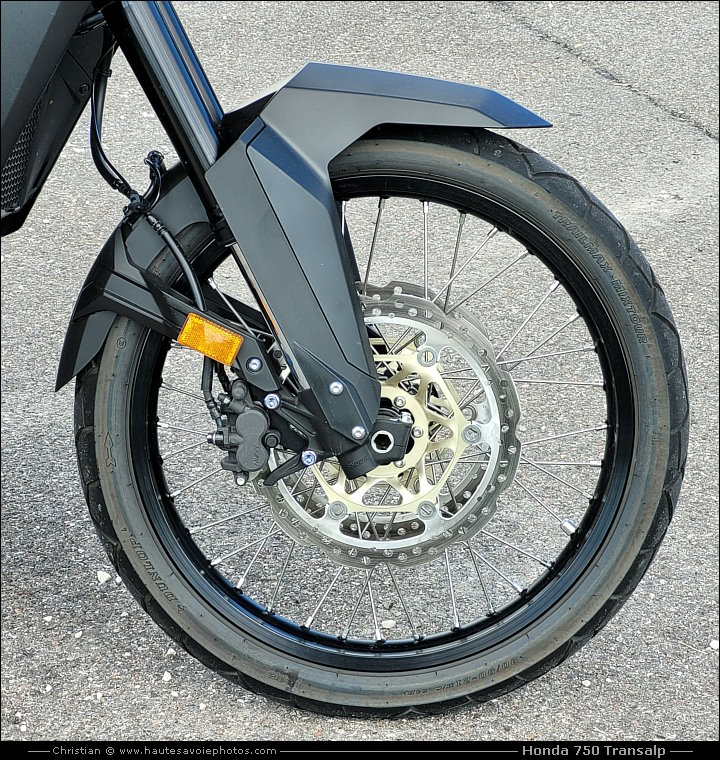 ![]() Photo : Honda 750 Transalp grise - Lieu : Chaux - Appareil : Samsung S20FE - JPG de 12 Mpixels en 2023 - © Christian Moteur : bicylindre en ligne de 755cm³, 4 temps, 8 soupapes, refroidissement liquide, puissance 92ch à 9500tr/min, couple 75Nm à 7250tr/min. Boite 6 vitesses avec shifter en option. Fourche AV inversée Showa Ø43 débatement 200mm, mono-amortisseur AR Pro-Link débatement 190mm. Frein avant : double disque de 310mm, frein arrière : simple disque de 256mm. Pneu avant : 90/90-R21, pneu arrière : 150/70-R18. Tableau de bord TFT en couleur de 5 pouces. Cinq modes de conduite (Sport, Standard, Pluie, Gravel et un mode personnalisable). Hauteur de selle 850mm, garde au sol 210mm, empattement 1560mm, chasse de 27°, réservoir 16,9L, poids 208kg tous pleins faits. ![]() Photo : Honda 750 Transalp modèle 2023 - Lieu : Chaux - Appareil : Samsung S20FE - JPG de 12 Mpixels en 2023 - © Christian MON AVIS : j'ai eu beaucoup de plaisir à rouler avec ce joli trail polyvalent et efficace, sur route et dans les chemins. LES PLUS : moteur volontaire souple et puissant, moto confortable, suspensions efficaces, bonne tenue de route, bon freinage, boîte de vitesse et embrayage très doux, shifter (en option) efficace, beau coloris blanc en hommage à l'ancienne Transalp, selle pilote et passager assez confortable, porte-bagages et poignées de maintien passager de série, bagagerie en option. écran TFT de 5 pouces complet et lisible, ABS désactivable en tout-terrain, poids de 208kg raisonnable, prix contenu. LES MOINS : pot d'échappement un peu massif, manque d'équipements en série, boutons de clignotants et klaxon inversés... ![]() Photo : compteur de Honda 750 Transalp - Lieu : Chaux - Appareil : Samsung S20FE - JPG de 12 Mpixels en 2023 - © Christian ![]() Photo : roue AV de la Honda 750 Transalp - Lieu : Chaux - Appareil : Samsung S20FE - JPG de 12 Mpixels en 2023 - © Christian ![]() Photo : moteur de la Honda 750 Transalp - Lieu : Chaux - Appareil : Samsung S20FE - JPG de 12 Mpixels en 2023 - © Christian ![]() Photo : roue AR Honda 750 Transalp - Lieu : Chaux - Appareil : Samsung S20FE - JPG de 12 Mpixels en 2023 - © Christian |