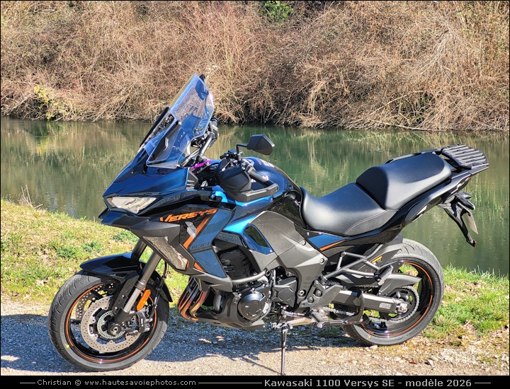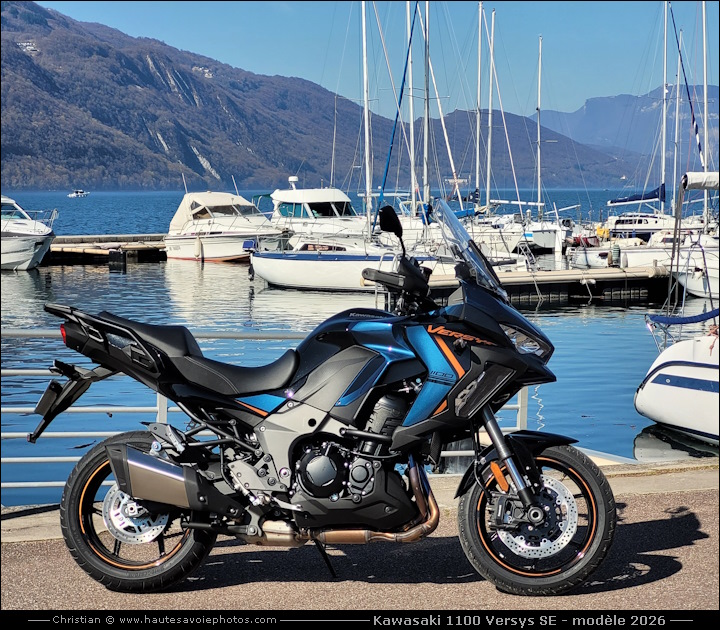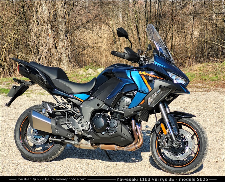 ![]() Photo : KAWASAKI Versys 1100 rodage en 287km - Lieu : Seynod - Appareil : Samsung S20FE - JPG de 12 Mpixels en 2025 - © Christian Moteur : 4 cylindres en ligne de 1099cm³, 4 temps, double ACT, 16 soupapes, puissance 135ch à 9000tr/min, couple 112Nm à 7600tr/min. Boite 6 vitesses, shifter. Fourche AV inversée pilotée KECS Ø43 débatement 150mm, mono-amortisseur AR piloté KECS débatement 152mm. Frein avant à double disque Nissin 310mm, frein arrière à disque Nissin 250mm. Pneu avant 120/70x17, pneu arrière 180/55x17. Hauteur de selle 840mm, garde au sol 150mm, empattement 1520mm, réservoir de 21L, poids 259kg tous pleins faits. ![]() Photo : KAWASAKI Versys 1100 modèle 2025 - Lieu : Seynod - Appareil : Samsung S20FE - JPG de 12 Mpixels en 2025 - © Christian MON AVIS : ce gros trail-gt routier est une invitation au voyage dans le confort et avec un moteur fiable et bien adapté au long court. LES PLUS : moto confortable, adaptée au duo, partie cycle efficace, régulateur de vitesse, belle finition et très bien équipée. Top-case + valises de 27L élégantes et bien intégrées. Bonne protection. Moteur souple à bas régime et énergique dans les tours... LES MOINS : pot 4 en 1 un peu massif, inadapté au off-road, moto un peu lourde à manoeuvrer à l'arrêt... ![]() Photo : Versys 1100 SE Grand Tourer - Lieu : Col de la Chambotte - Appareil : Samsung S20FE - JPG de 12 Mpixels en 2025 - © Christian ![]() Photo : KAWASAKI Versys 1100 SE - Lieu : Lacc du Bourget - Appareil : Samsung S20FE - JPG de 12 Mpixels en 2025 - © Christian ![]() Photo : KAWASAKI Versys 1100 SE - Lieu : Col de la Marocaz - Appareil : Samsung S20FE - JPG de 12 Mpixels en 2025 - © Christian ![]() Photo : KAWASAKI Versys 1100 SE - Lieu : Lac de Lathuile - Appareil : Samsung S20FE - JPG de 12 Mpixels en 2025 - © Christian ![]() Photo : KAWASAKI Versys 1100 SE - Lieu : Col des Prés - Appareil : Samsung S20FE - JPG de 12 Mpixels en 2025 - © Christian ![]() Photo : compteur de la KAWASAKI Versys 1100 - Lieu : Duingt - Appareil : Samsung S20FE - JPG de 12 Mpixels en 2025 - © Christian ![]() Photo : commodo de la KAWASAKI Versys 1100 - Lieu : Duingt - Appareil : Samsung S20FE - JPG de 12 Mpixels en 2025 - © Christian ![]() Photo : roue AV de la KAWASAKI Versys 1100 - Lieu : Duingt - Appareil : Samsung S20FE - JPG de 12 Mpixels en 2025 - © Christian ![]() Photo : moteur de la KAWASAKI Versys 1100 - Lieu : Duingt - Appareil : Samsung S20FE - JPG de 12 Mpixels en 2025 - © Christian ![]() Photo : roue AR de la KAWASAKI Versys 1100 - Lieu : Duingt - Appareil : Samsung S20FE - JPG de 12 Mpixels en 2025 - © Christian ![]() Photo : Kawa Versys 1100 rodage en 180km - Lieu : Chindrieux - Appareil : Samsung S20FE - JPG de 12 Mpixels en 2026 - © Christian ![]() Photo : Versys 1100 SE - Lieu : canal de Savière à Chanaz - Appareil : Samsung S20FE - JPG de 12 Mpixels en 2026 - © Christian ![]() Photo : Versys 1100 SE - Lieu : Aix-Les-Bains - Appareil : Samsung S20FE - JPG de 12 Mpixels en 2026 - © Christian ![]() Photo : Versys 1100 SE modèle 2026 - Lieu : Seynod - Appareil : Samsung S20FE - JPG de 12 Mpixels en 2026 - © Christian ![]() Photo : Versys 1100 SE bleue - Lieu : Chindrieux - Appareil : Samsung S20FE - JPG de 12 Mpixels en 2026 - © Christian