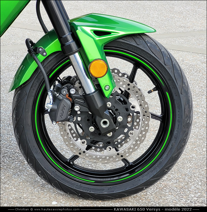 ![]() Photo : Kawasaki 650 Versys modèle 2022 - Lieu : Duingt - Appareil : Samsung S20FE - JPG de 12 Mpixels en mars 2022 - © Christian Moteur : bicylindre parallèle de 649cm³, 4 temps, double ACT, 8 soupapes, puissance 67ch à 8500tr/min, couple 61Nm à 7000tr/min. Boite 6 vitesses, embrayage antidrible. Fourche AV inversée Ø41 débatement 150mm réglable, monoamortisseur AR débatement 145mm. Frein avant à double disque Nissin 300mm, frein arrière à disque Nissin 250mm. Pneu avant 120/70ZR17, pneu arrière 160/60ZR17. Hauteur de selle 845mm, garde au sol 170mm, empattement 1415mm, chasse de 25°, réservoir 21L, poids 217kg tous pleins faits. ![]() Photo : Kawasaki 650 Versys noire et verte - Lieu : Duingt - Appareil : Samsung S20FE - JPG de 12 Mpixels en mars 2022 - © Christian MON AVIS : joli trail routier léger et polyvalent qui permet aussi bien d'arsouiller que de voyager avec le kit de bagagerie bien intégré. LES PLUS : moto confortable, bonne tenue de route, suspensions av & ar réglables, molette pour régler la précharge, bon freinage, selle pilote et passager moelleuse et adaptée au duo, poignées de maintien passager, bagagerie en option élégante et pratique, compteur TFT couleur bien lisible avec des informations complètes. Esthétique moderne et joli coloris vert métalisé et noir, faible conso réelle de 4L/100, bonne autonomie avec le réservoir de 21L. Moteur fiable. Dispo en A2. Prix abordable... LES MOINS : boîte de vitesse un poil dure, pas de shifter, quelques chevaux hargneux en plus seraient bienvenus... ![]() Photo : ma Kawasaki 650 Versys de face - Lieu : Duingt - Appareil : Samsung S20FE - JPG de 12 Mpixels en mars 2022 - © Christian ![]() Photo : phares LEDs de ma 650 Versys - Lieu : Duingt - Appareil : Samsung S20FE - JPG de 12 Mpixels en mars 2022 - © Christian ![]() Photo : phare à LED de profil - Lieu : Duingt - Appareil : Samsung S20FE - JPG de 12 Mpixels en mars 2022 - © Christian ![]() Photo : poste de pilotage de ma 650 Versys - Lieu : Duingt - Appareil : Samsung S20FE - JPG de 12 Mpixels en mars 2022 - © Christian ![]() Photo : compteur TFT 4,3" de ma Kawasaki - Lieu : Duingt - Appareil : Samsung S20FE - JPG de 12 Mpixels en mars 2022 - © Christian ![]() Photo : roue arrière de ma 650 Versys - Lieu : Duingt - Appareil : Samsung S20FE - JPG de 12 Mpixels en mars 2022 - © Christian ![]() Photo : moteur de ma 650 Versys - Lieu : Duingt - Appareil : Samsung S20FE - JPG de 12 Mpixels en mars 2022 - © Christian ![]() Photo : roue avant de ma 650 Versys - Lieu : Duingt - Appareil : Samsung S20FE - JPG de 12 Mpixels en mars 2022 - © Christian ![]() Photo : molette de précharge - Lieu : Duingt - Appareil : Samsung S20FE - JPG de 12 Mpixels en mars 2022 - © Christian ![]() Photo : ma 650 Versys avec le topcase - Lieu : Semnoz - Appareil : Samsung S20FE - JPG de 12 Mpixels en mars 2022 - © Christian ![]() Photo : ma 650 Versys avec les valises - Lieu : Duingt - Appareil : Samsung S20FE - JPG de 12 Mpixels en mars 2022 - © Christian ![]() Photo : ma 650 Versys en rodage - Lieu : Pont de l'Abîme - Appareil : Samsung S20FE - JPG de 12 Mpixels en mars 2022 - © Christian |