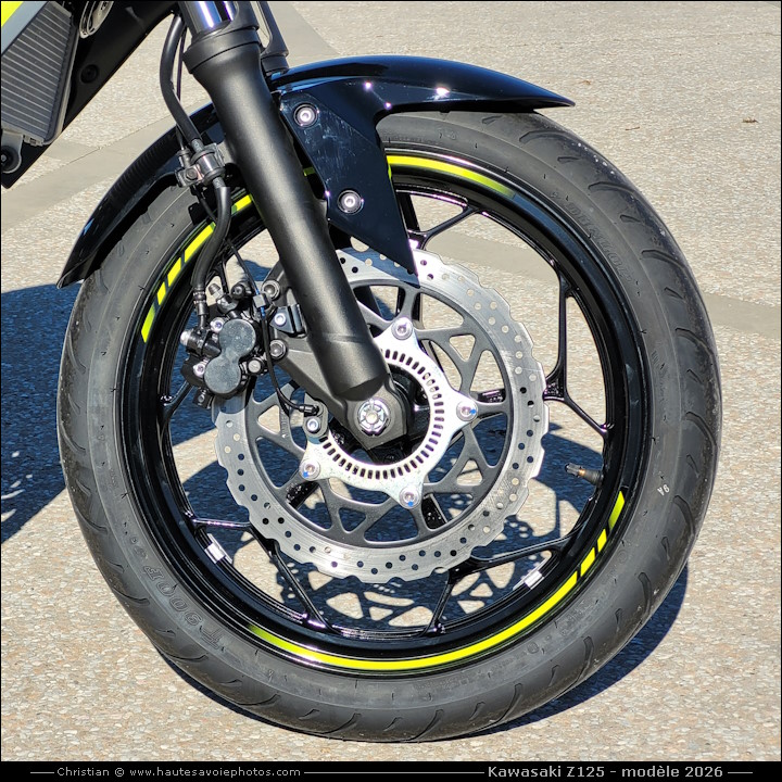 ![]() Photo : KAWASAKI Z125 petit rodage de 100km - Lieu : Duingt - Appareil : Samsung S20FE - JPG de 12 Mpixels en 2026 - © Christian Moteur : mono-cylindre de 125cm³, 4 temps, double ACT, 4 soupapes, puissance 15ch à 10000tr/min, couple 11.7 Nm à 7700tr/min. Boite 6 vitesses. Cadre tubulaire acier. Fourche AV Ø37 débatement 110mm, amortisseur AR Uni-Trak débatement 120mm. Frein avant à simple disque 290mm, frein arrière à simple disque 220mm. Pneu avant 100/80-17, pneu arrière 130/70-17. Hauteur de selle 815mm, garde au sol 185mm, empattement 1330mm, réservoir de 11L, poids 147kg tous pleins faits. ![]() Photo : KAWASAKI Z125 modèle 2026 - Lieu : Duingt - Appareil : Samsung S20FE - JPG de 12 Mpixels en 2026 - © Christian ![]() Photo : KAWASAKI Z125 modèle 2026 - Lieu : Duingt - Appareil : Samsung S20FE - JPG de 12 Mpixels en 2026 - © Christian ![]() Photo : compteur de la KAWASAKI Z125 - Lieu : Duingt - Appareil : Samsung S20FE - JPG de 12 Mpixels en 2026 - © Christian ![]() Photo : roue avant de la KAWASAKI Z125 - Lieu : Duingt - Appareil : Samsung S20FE - JPG de 12 Mpixels en 2026 - © Christian ![]() Photo : moteur de la KAWASAKI Z125 - Lieu : Duingt - Appareil : Samsung S20FE - JPG de 12 Mpixels en 2026 - © Christian ![]() Photo : roue arrière de la KAWASAKI Z125 - Lieu : Duingt - Appareil : Samsung S20FE - JPG de 12 Mpixels en 2026 - © Christian