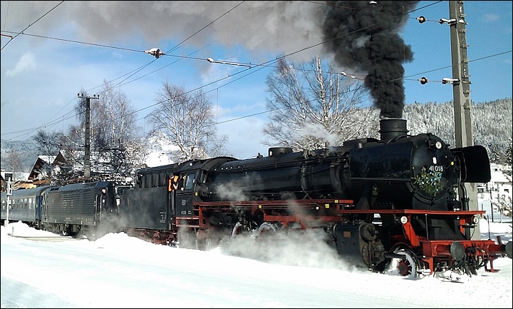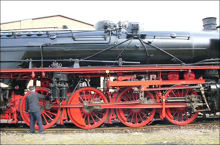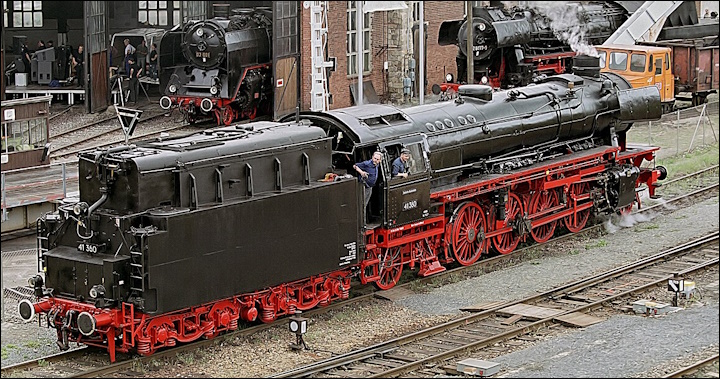 ![]() Photo : ma loco à vapeur BR 041 293-2 - Lieu : Saint Jorioz - Appareil : Canon G5X - JPG de 20 Mpixels en 2026 - © Christian ![]() Photo : ma loco vapeur DB BR 041 293-2 - Lieu : Saint Jorioz - Appareil : Canon G5X - JPG de 20 Mpixels en 2026 - © Christian ![]() Photo : ma loco vapeur DB BR 041 293-2 - Lieu : Saint Jorioz - Appareil : Canon G5X - JPG de 20 Mpixels en 2026 - © Christian ![]() Photo : ma locomotive à vapeur DB BR 041 293-2 - Lieu : Saint Jorioz - Appareil : Canon G5X - JPG de 20 Mpixels en 2026 - © Christian - Diamètre des roues motrices : Ø1m60 - Moteur : 2 cylindres - Puissance : 1900 Cv - Vitesse : 90 km/h maxi - type 141 Mikado. Longueur : 23m905 - Hauteur : 4m550 - Poids : 100 ou 112 tonnes - Capacité d'eau : 34,0 m³ - Capacité charbon : 10 ou 11 tonnes. Exploitant : Deutsche Reichsbahn - Affection : trains de marchandises - Nombre : 366 locomotives, BR 41 001 à 41 366. Date de construction : de 1937 à 1941 - Date de retrait : 1986 - Préservation : 21 locos dont 5 en état de marche. ![]() Photo : locomotive à vapeur BR 41 241 - Fichier : origine Wikipédia sur les BR 41 de la Deutsche Reichsbahn... ![]() Photo : locomotive à vapeur BR 41 018 à Seefeld au Tyrol en décembre 2011 - Fichier : origine Wikipédia sur les BR 41... ![]() Photo : bielles et essieux de la locomotive à vapeur BR 41 024 - Fichier : origine Wikipédia sur les BR 41... ![]() Photo : loco vapeur BR 41 360 (tender mazout) - dépôt de Dresde-Altstadt en 2003 - Fichier : origine Wikipédia... |
