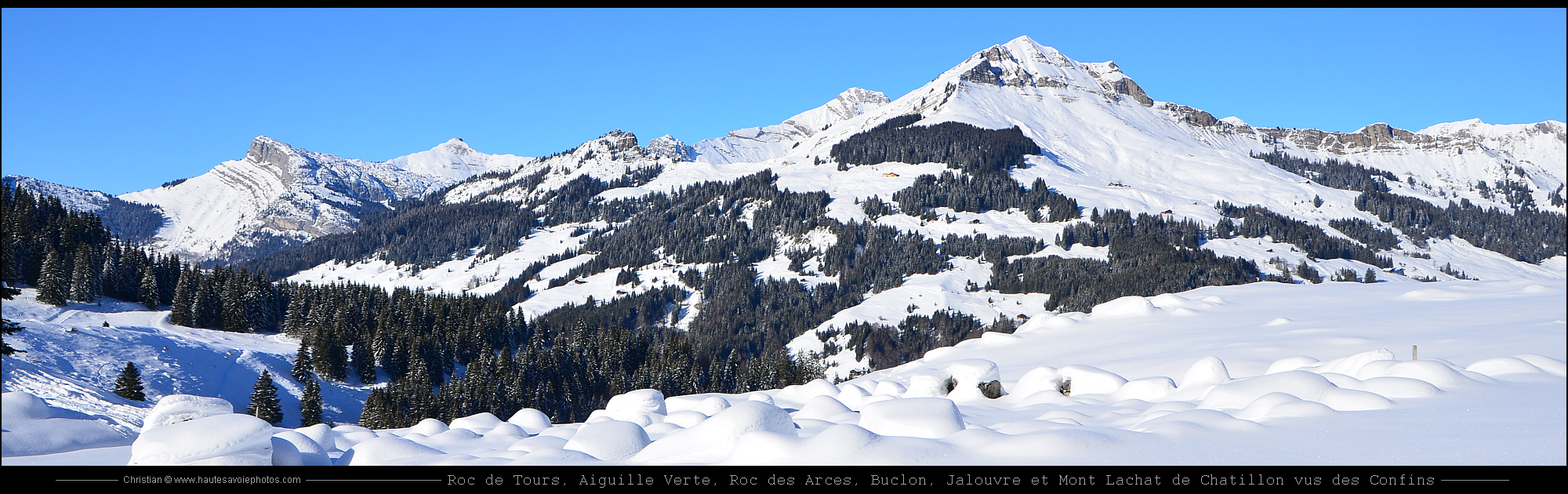 Panorama (en 2000x630 pixels) du Mont Lachat de Chatillon vu des Confins au-dessus de La Clusaz en Haute-Savoie.