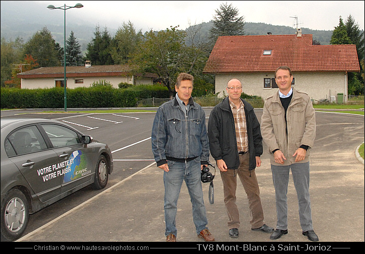 les reporters de LA PLACE DU VILLAGE de TV8 Mont-Blanc, avec le Christian...