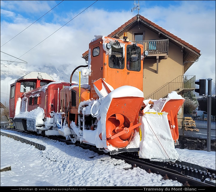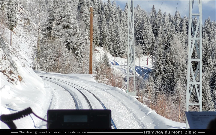 ![]() Photo : Marie et Anne à la gare - Lieu : Saint-Gervais - Appareil : Samsung S20 FE - JPG de 12 Mpixels en 2023 - © Christian En 2022 les rames d'anciennes générations sont remplacées par 3 nouvelles. Capacité de 120 places assises et 80 debouts. Le trio historique des motrices électriques est rejoint par une quatrième rame blanche, qui sera baptisée : Marguerite. La vitesse de pointe passe de 15km/h pour les anciennes à 20km/h pour les nouvelles, réduisant ainsi le temps de trajet. Les nouvelles matrices électriques bénéficient d’un système de recharge à la descente, pour optimiser leur consommation. L'hiver du Fayet ou Saint-Gervais le TMB vous emmène au plateau de Bellevue à 1794m et l'été au Nid d'Aigle à 2372m. ![]() Photo : Anne, rame arrivée en 2022 - Lieu : Saint-Gervais - Appareil : Samsung S20 FE - JPG de 12 Mpixels en 2023 - © Christian ![]() Photo : Anne à la gare TMB - Lieu : Saint-Gervais - Appareil : Samsung S20 FE - JPG de 12 Mpixels en 2023 - © Christian ![]() Photo : Marie, rame arrivée en 2022 - Lieu : Saint-Gervais - Appareil : Samsung S20 FE - JPG de 12 Mpixels en 2023 - © Christian ![]() Photo : Marie à la gare TMB - Lieu : Saint-Gervais - Appareil : Samsung S20 FE - JPG de 12 Mpixels en 2023 - © Christian ![]() Photo : Jeanne et Marguerite à la gare - Lieu : Saint-Gervais - Appareil : Samsung S20 FE - JPG de 12 Mpixels en 2023 - © Christian ![]() Photo : Marguerite arrivée en 2022 - Lieu : Saint-Gervais - Appareil : Samsung S20 FE - JPG de 12 Mpixels en 2023 - © Christian ![]() Photo : Marguerite à la gare TMB - Lieu : Saint-Gervais - Appareil : Samsung S20 FE - JPG de 12 Mpixels en 2023 - © Christian ![]() Photo : croisement de Marie et Anne - Lieu : Saint-Gervais - Appareil : Samsung S20 FE - JPG de 12 Mpixels en 2026 - © Christian ![]() Photo : Marie au Col de Voza 1653m - Lieu : Saint-Gervais - Appareil : Samsung S20 FE - JPG de 12 Mpixels en 2026 - © Christian ![]() Photo : Marie à Bellevue 1794m en hiver - Lieu : Saint-Gervais - Appareil : Samsung S20 FE - JPG de 12 Mpixels en 2026 - © Christian ![]() Photo : Poste de pilotage de Marie - Lieu : Saint-Gervais - Appareil : Samsung S20 FE - JPG de 12 Mpixels en 2023 - © Christian ![]() Photo : Poste de pilotage de Marie - Lieu : Saint-Gervais - Appareil : Samsung S20 FE - JPG de 12 Mpixels en 2023 - © Christian ![]() Photo : Intérieur du Tramway du Mont-Blanc - Lieu : Saint-Gervais - Appareil : Samsung S20 FE - JPG de 12 Mpixels en 2023 - © Christian ![]() Photo : loco déneigeuse diesel du TMB à Saint-Gervais - Appareil : Samsung S20 FE - JPG de 12 Mpixels en 2026 - © Christian ![]() Photo : voie enneigée du TMB - Lieu : Saint-Gervais - Appareil : Samsung S20 FE - JPG de 12 Mpixels en 2026 - © Christian ![]() Photo : voie enneigée du TMB à Voza - Lieu : Saint-Gervais - Appareil : Samsung S20 FE - JPG de 12 Mpixels en 2026 - © Christian ![]() Photo : Loco à vapeur de 1909 à 1956 - Lieu : Le Fayet - Appareil : Canon G5X - JPG de 20 Mpixels en 2021 - © Christian ![]() Photo : Gare de départ au Fayet à 580m - Lieu : Haute-Savoie - Appareil : Canon G5X - JPG de 20 Mpixels en 2021 - © Christian ![]() Photo : Gare (avant rénovation) de Saint-Gervais à 890m - Appareil : Canon G5X - JPG de 20 Mpixels en 2021 - © Christian ![]() Photo : Gare (après rénovation) de Saint-Gervais à 890m - Appareil : Samsung S20 FE - JPG de 10 Mpixels en 2022 - © Christian ![]() Photo : Jeanne la motrice rouge du TMB - Lieu : Nid g'Aigle 2372m - Appareil : Canon G5X - JPG de 20 Mpixels en 2021 - © Christian Le TMB, train à crémaillère le plus haut de France, il y avait 3 rames (nommées Anne, Jeanne, Marie) pour un voyage hors du temps. Départ de la gare du Fayet (580 m) ou de Saint-Gervais (792 m), le Tramway du Mont-Blanc monte jusqu'au Nid d'Aigle (2372 m), porte d'entrée de la voie royale du Mont-Blanc, avec une belle vue sur le glacier de et l'aiguille de Bionnassay (4052m). La ligne (12,4 km et pente à 15% en moy)¨a été construite de 1905 à 1913. Electrification en 1955, courant 11000 V à 50 Hz. Les 3 rames à moteur électrique sont reçues en 1957. Elles portent les prénoms des 3 filles du directeur Pierre Noury. Une rame comporte la motrice (de 15,40 m et 31,4 tonnes, puissance 640 cv) et une remorque de 13,7 m. Vitesse 15 km/h. ![]() Photo : Anne la motrice verte du TMB - Lieu : Nid g'Aigle 2372m - Appareil : Canon G5X - JPG de 20 Mpixels en 2021 - © Christian ![]() Photo : Marie la motrice bleue du TMB - Lieu : Saint-Gervais - Appareil : Canon G5X - JPG de 20 Mpixels en 2021 - © Christian ![]() Photo : Poste de contrôle de la rame du TMB - Lieu : Saint-Gervais - Appareil : Canon G5X - JPG de 20 Mpixels en 2021 - © Christian ![]() Photo : Intérieur du Tramway du Mont-Blanc - Lieu : Le Fayet - Appareil : Canon G5X - JPG de 20 Mpixels en 2021 - © Christian ![]() Photo : Voie métrique à crémaillère Strub - Lieu : Saint-Gervais - Appareil : Canon G5X - JPG de 20 Mpixels en 2021 - © Christian ![]() Photo : Bogie de la motrice Jeanne - Lieu : Le Fayet - Appareil : Canon G5X - JPG de 20 Mpixels en 2021 - © Christian ![]() Photo : Bogie de la remorque de Jeanne - Lieu : Le Fayet - Appareil : Canon G5X - JPG de 20 Mpixels en 2021 - © Christian ![]() Photo : Jeanne sortant du garage TMB - Lieu : Le Fayet - Appareil : Canon G5X - JPG de 20 Mpixels en 2021 - © Christian ![]() Photo : Jeanne à la gare - Lieu : Saint-Gervais - Appareil : Canon G5X - JPG de 20 Mpixels en 2021 - © Christian ![]() Photo : Marie quittant la gare - Lieu : Saint-Gervais - Appareil : Canon G5X - JPG de 20 Mpixels en 2021 - © Christian ![]() Photo : Anne à la gare - Lieu : Saint-Gervais - Appareil : Samsung S20 FE - JPG de 10 Mpixels en 2022 - © Christian ![]() Photo : Voies de croisement - Lieu : Col de Voza - Appareil : Canon G5X - JPG de 20 Mpixels en 2021 - © Christian ![]() Photo : Voie à crémaillère du TMB - Lieu : Saint-Gervais - Appareil : Canon G5X - JPG de